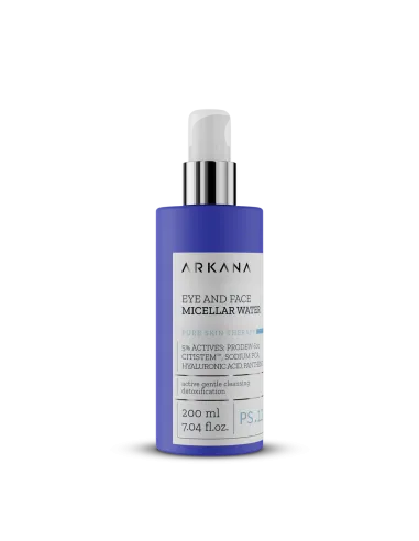Arkana Eye + Face Micellar Water 200 ml es un desmaquillante micelar suave y eficaz, especialmente formulado para limpiar y purificar la piel sin alterar su equilibrio natural.