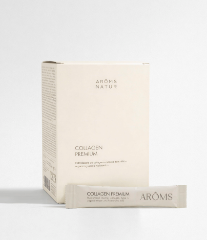 El Collagen Premium de Aroms Natur es un complemento de colágeno que ayuda a mejorar la elasticidad de la piel, reducir los signos del envejecimiento y favorecer el bienestar general.