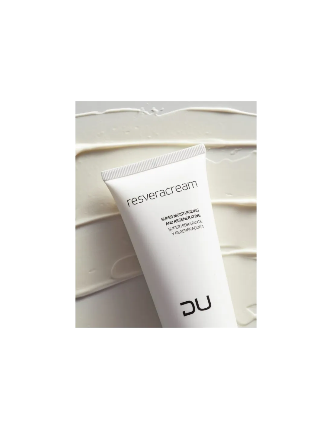 Crema super hidratante y regeneradora. Todos y cada uno de los 30 ingredientes que contiene han sido seleccionados entre los principios activos más efectivos conocidos en la actualidad, con capacidad real y demostrada de frenar la involución de la piel. El uso de Resveracream estimula las sirtuinas de las células, previniéndolas del deterioro y potenciando su función. Regenera y revitaliza la piel a la vez que aumenta su hidratación.