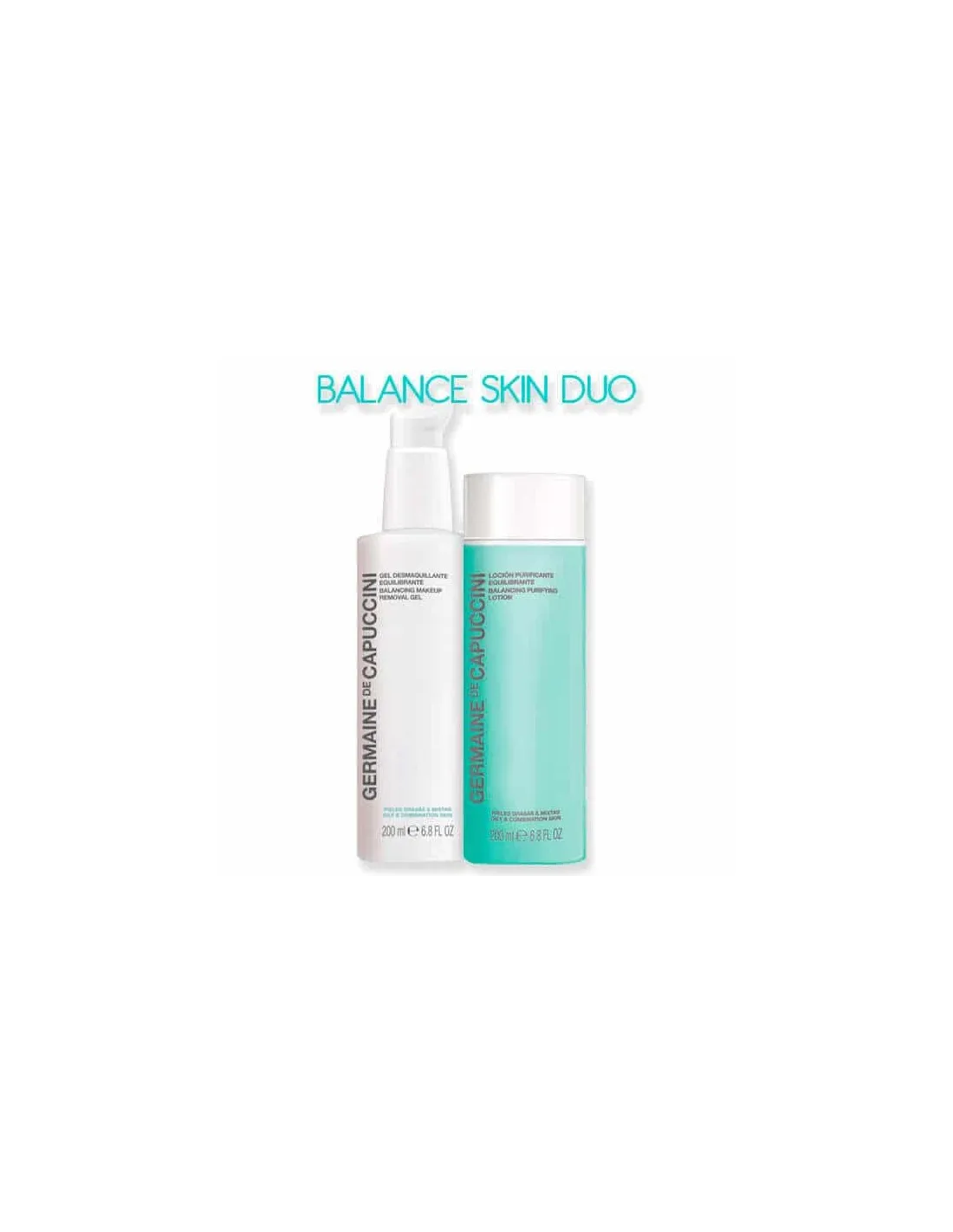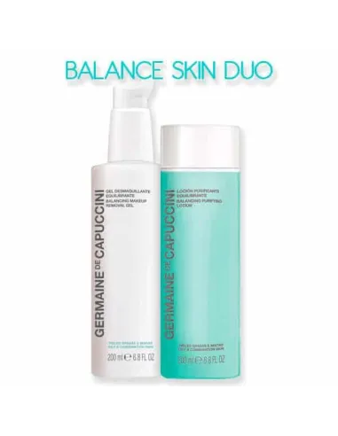 Pack de limpieza para piel grasa y mixta. Germaine de Capuccini Balance Skin Dúo (Loción + Gel Desmaquillante) limpia, regula el sebo y deja la piel fresca y mate.