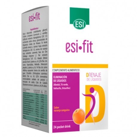 Esi Fit Drenaje Pocket Dring 24 Sobres es un complemento alimenticio que combina muy bien con las dietas de adelgazamiento ya que actúa rápidamente sobre los líquidos de nuestro organismo. Muy útil para combatir la sensación de piernas cansadas y pesadas. También reduce los edemas, causados por la mala circulación o dieta alimentaria incorrecta, que aparecen en las piernas, reduce la inflamación del organismo debido al aumento de la diuresis e incrementa de forma natural el drenaje de los fluidos de los tejidos.