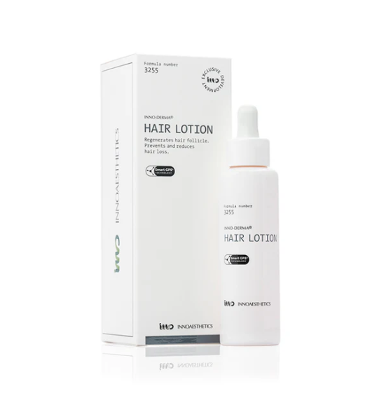 Loción anticaída y estimulante capilar. Hair Lotion de Innoaesthetics fortalece el cabello, activa el crecimiento y mejora la densidad con uso tópico diario.