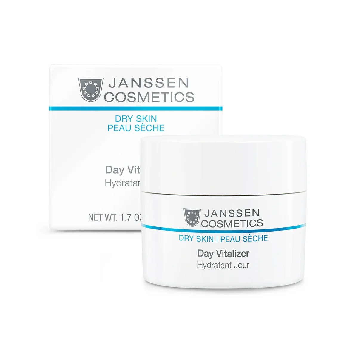 Crema facial hidratante de día Day Vitalizer de Janssen Cosmetics que aporta hidratación continua, vitalidad y confort a la piel, ayudando a mantenerla fresca, suave y protegida durante toda la jornada.