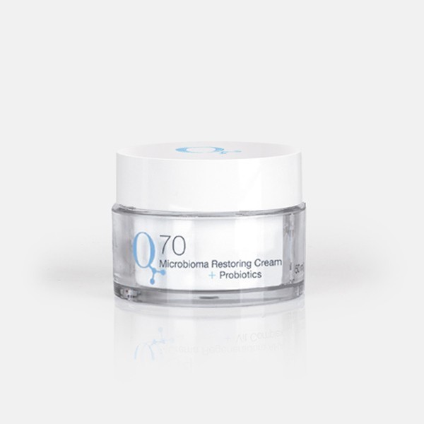 NAQUA Q70 Microbiona Restoring Cream + Probiotics es una crema restauradora y equilibrante que refuerza la barrera cutánea, protege la microbiota natural y repara la piel sensible, irritada o deshidratada.