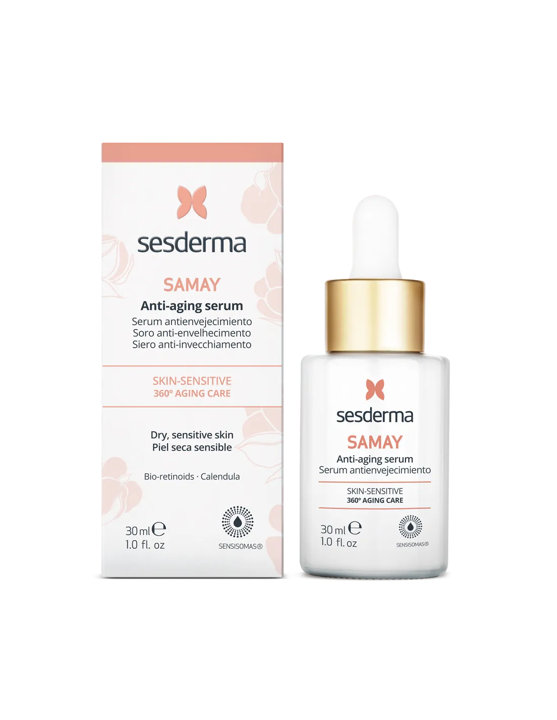 Sesderma Samay Liposomal Sérum es un sérum facial de alta tolerancia, especialmente formulado para tratar los signos del envejecimiento en pieles sensibles o reactivas, sin provocar irritación. Gracias a su sistema liposomal, los activos penetran profundamente con eficacia y suavidad.