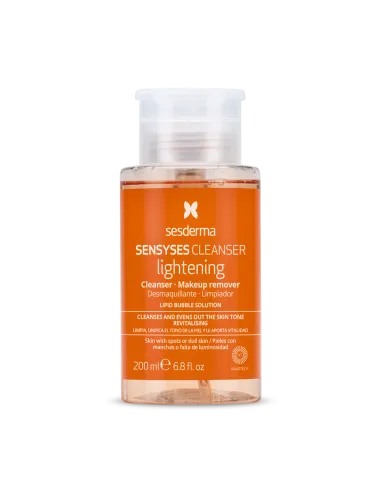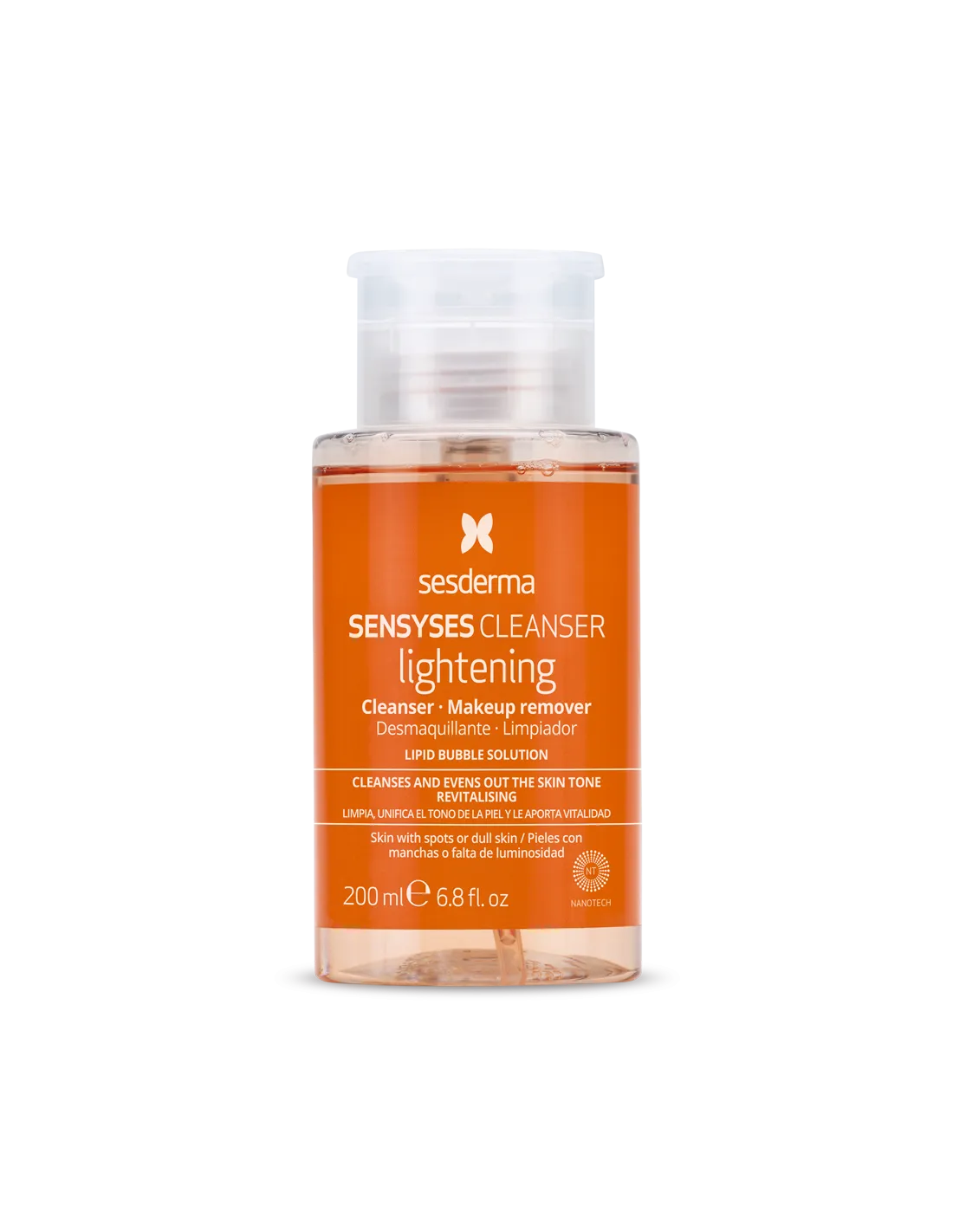 Sesderma Sensyses Lightening Cleanser es una solución liposomal de limpieza facial diseñada para pieles apagadas, con manchas o tono desigual. Gracias a su tecnología liposomal, limpia profundamente desde el interior celular y actúa como potenciador de tratamientos despigmentantes, al eliminar impurezas que pueden interferir en la acción de los activos.