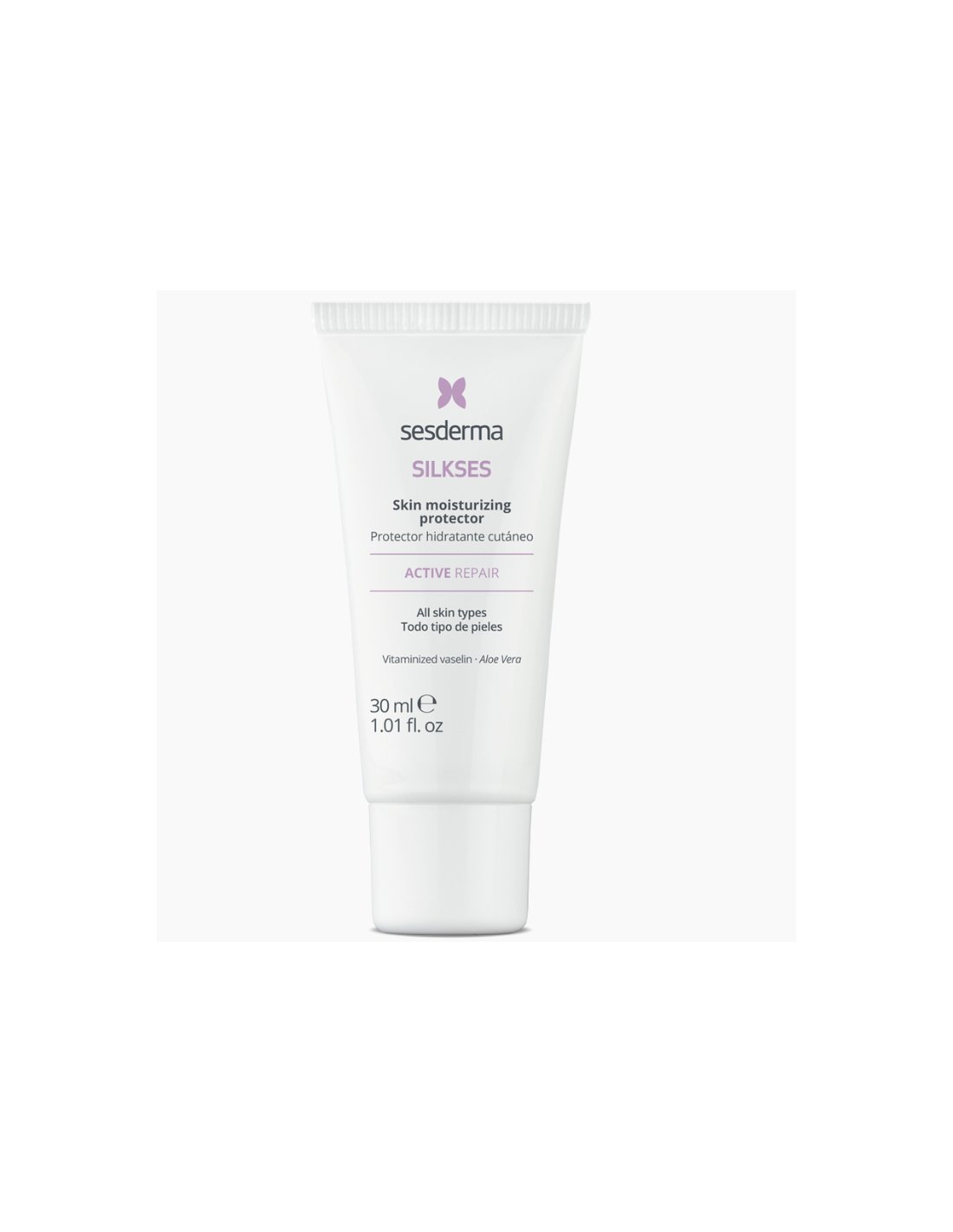 Sesderma Silkses Protector Cutáneo Hidratante es una emulsión ligera y no oclusiva que protege, calma e hidrata intensamente la piel alterada, ya sea por tratamientos estéticos, condiciones dermatológicas o agresiones externas. Su fórmula ha sido diseñada para restaurar la barrera cutánea, prevenir la pérdida de agua y mejorar la regeneración de la piel.