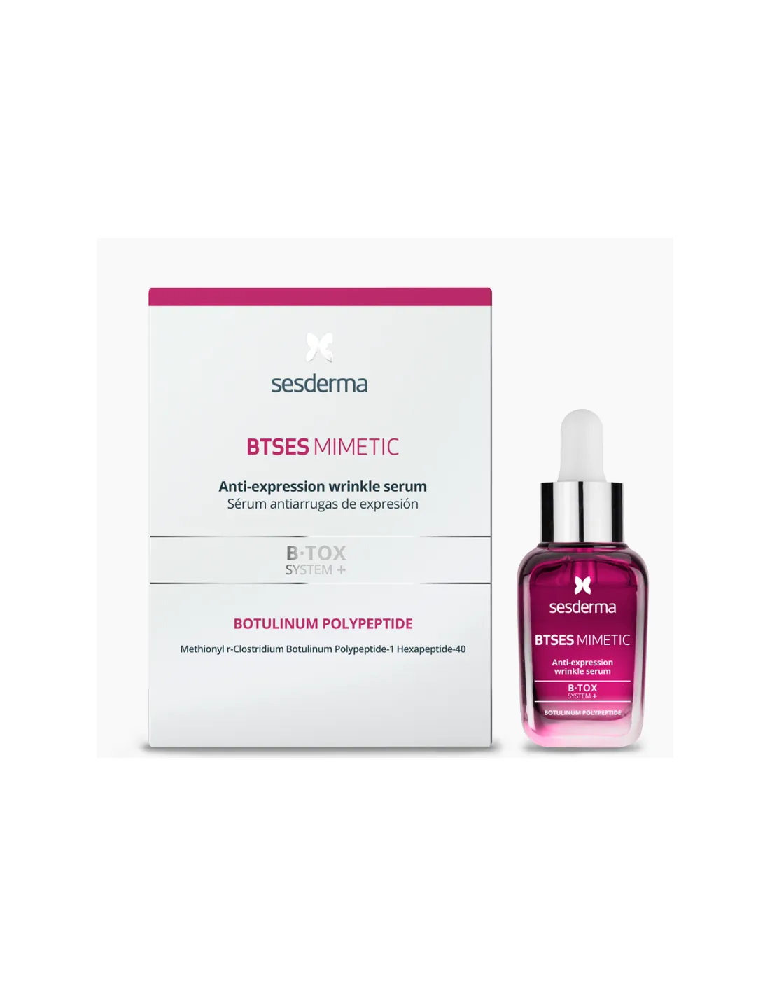 Corrige y suaviza las arrugas de expresión con SESDERMA BTSES Mimetic Serum, un innovador tratamiento inspirado en la toxina botulínica que ayuda a relajar los músculos faciales para reducir las líneas de expresión sin necesidad de agujas.