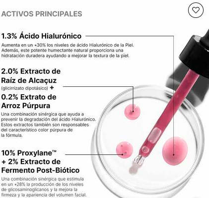Gracias a su textura ligera, el sérum se absorbe rápidamente, proporcionando hidratación inmediata y mejorando la apariencia general de la piel.