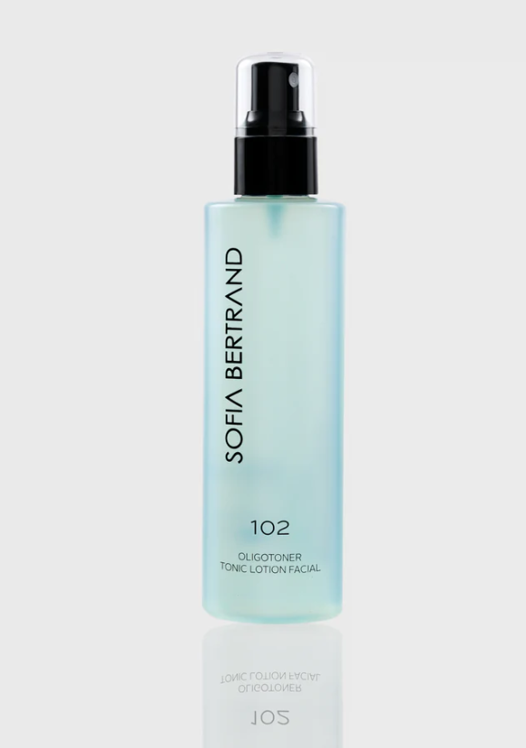El 102 Oligotoner de Sofía Bertrand es un tónico facial diseñado para equilibrar, hidratar y preparar la piel tras la limpieza, mejorando la eficacia de los tratamientos posteriores.