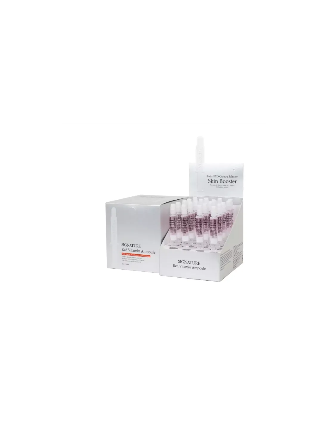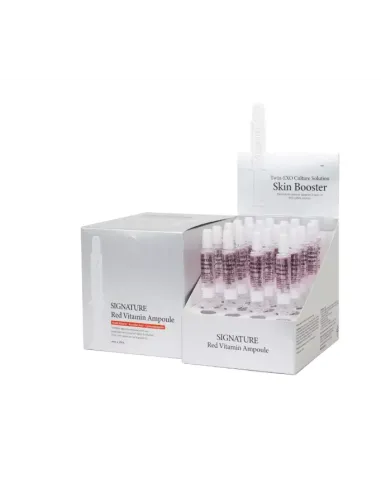 Lleva tu rutina de cuidado facial a otro nivel con nuestra Ampolla Roja de Vitaminas, una fórmula revolucionaria diseñada para revelar la luminosidad natural de tu piel. Repleta de potentes ingredientes, esta ampolla a base de exosomas está meticulosamente elaborada para ofrecer efectos iluminadores inigualables, favoreciendo una tez luminosa y uniforme.