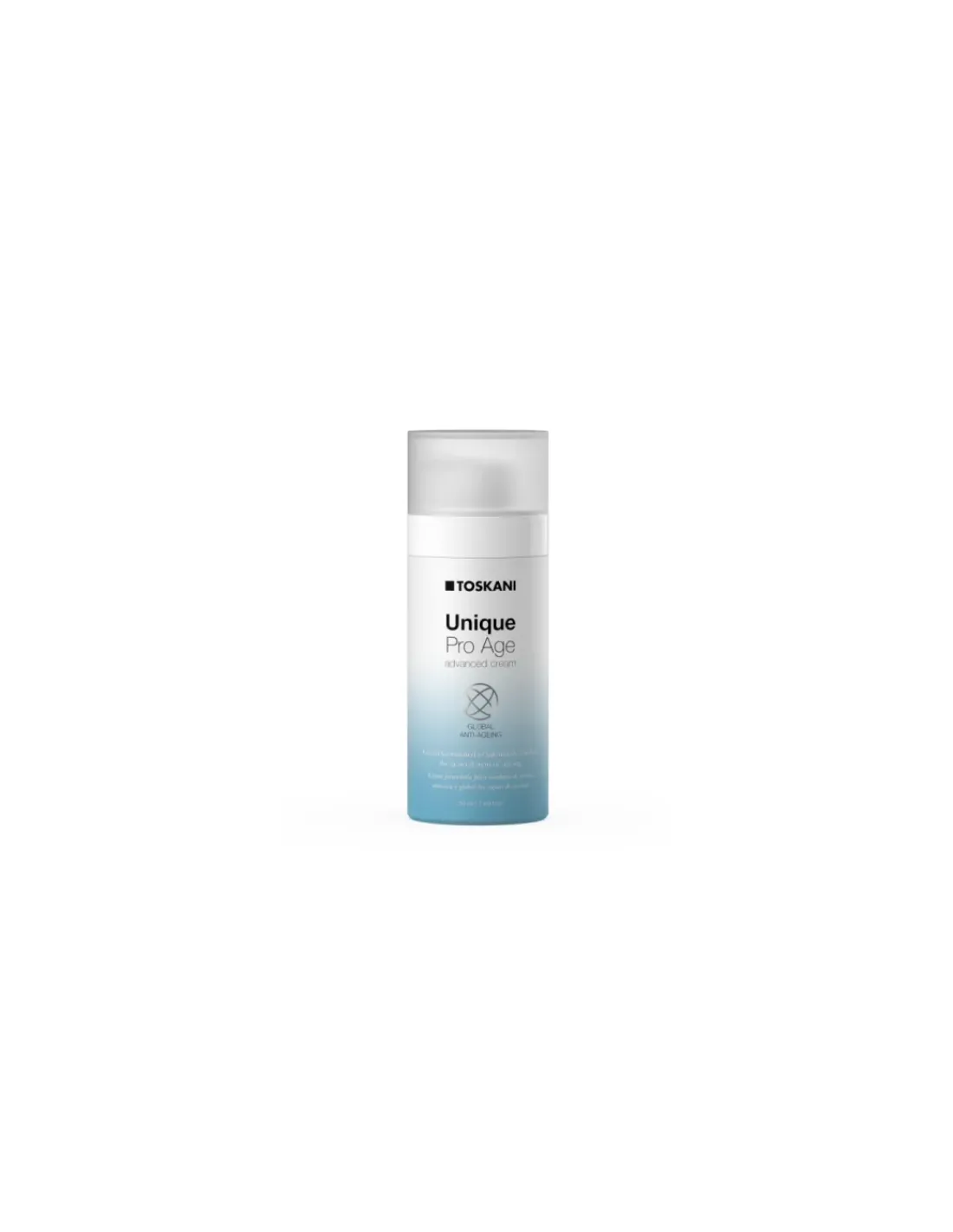 La Crema Unique Pro Age Advanced de Toskani está diseñada para pieles maduras que buscan una solución avanzada contra los signos del envejecimiento. Su fórmula innovadora combina activos reafirmantes y regeneradores que mejoran la elasticidad y textura cutánea, reduciendo arrugas y líneas de expresión.