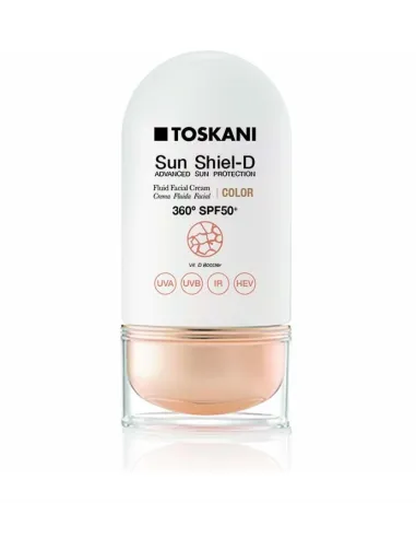 TOSKANI - SUN SHIEL-D CREMA FLUIDA FACIAL COLOR SPF50: PROTECCION SOLAR AVANZADA SÍNTESIS DE VITAMINA C
